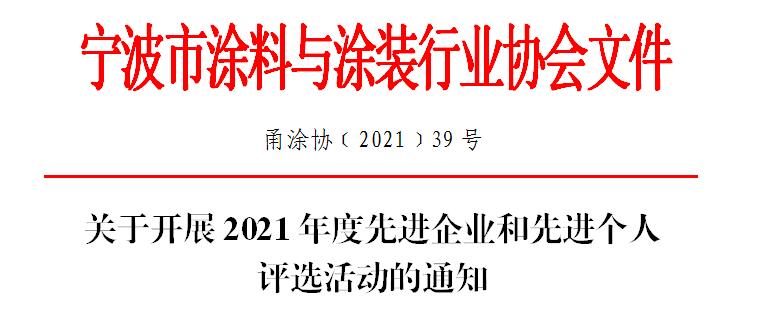 2021年度优胜企业由企业自荐和先进个人由企业推荐方式,协会将对候选企业和个人由考评小组进行综合考核,经“理事群”通信形式审议通过后,评出2021年度先进企业和先进个人,先进企业和先进个人将在六届理事群上进行公示,在六届二次会员大会上进行表彰,并授予奖牌和证书,届时获得荣誉称号的企业与个人将在宁波市涂料与涂装行业协会官方网站上和会刊上进行广泛宣传。
