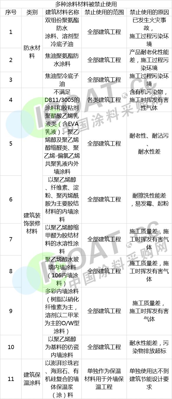 以下为被禁止使用涂料材料名单: