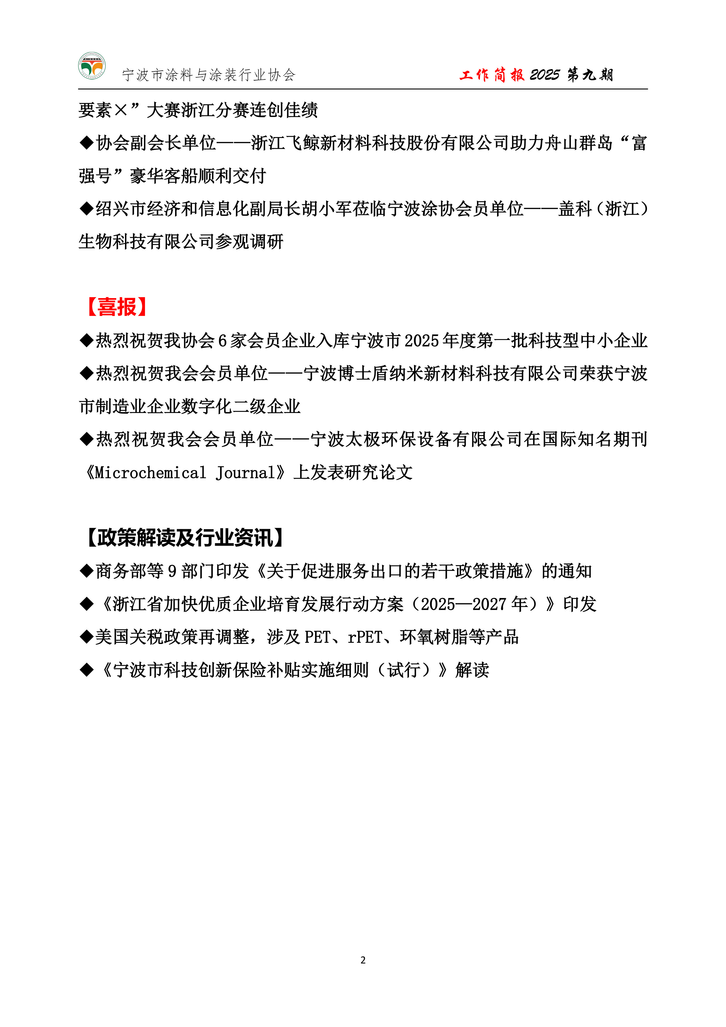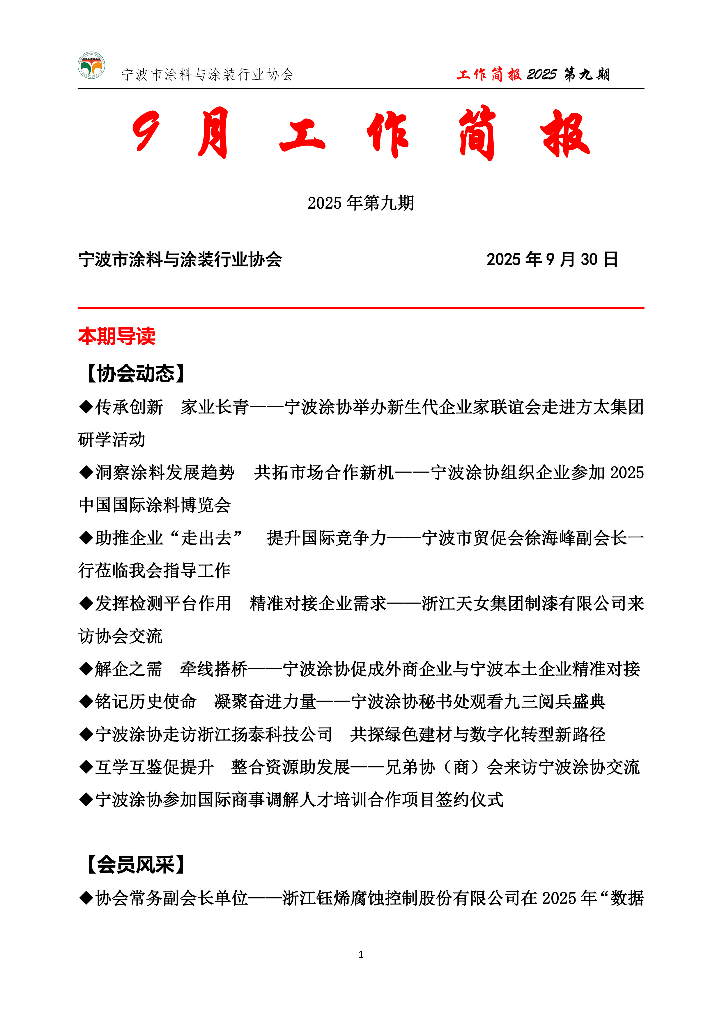 宁波市涂料与涂装行业协会2025年9月份工作简报