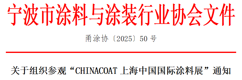 为拓展会员企业视野,了解涂料行业现状和发展趋势,协会将在2025年11月25日组织会员企业赴上海免费参观“CHINACOAT上海中国国际涂料展”,现将相关事项通知如下。