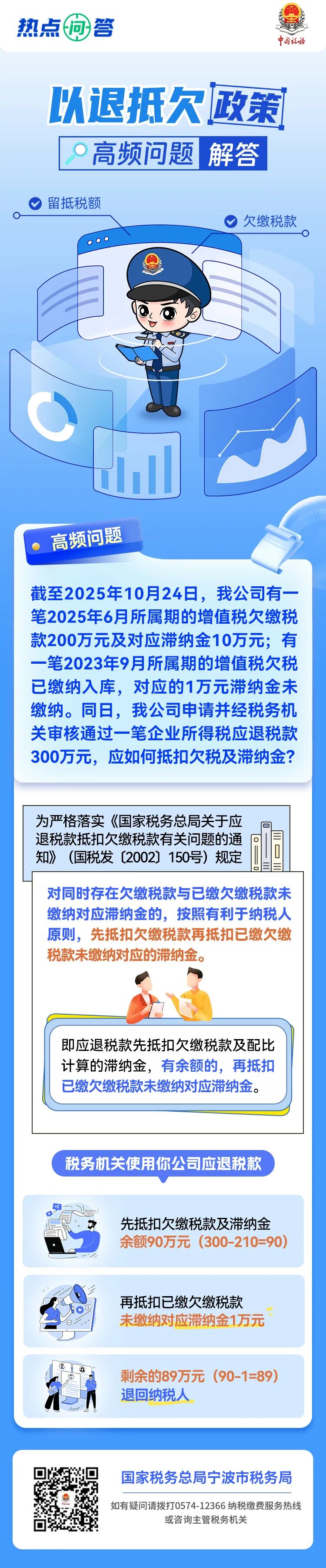 日前,国家税务总局发布《应退税款抵扣欠缴税款政策即问即答》,帮纳税人缴费人精准掌握应退税款抵扣欠缴税款政策和高频疑问。