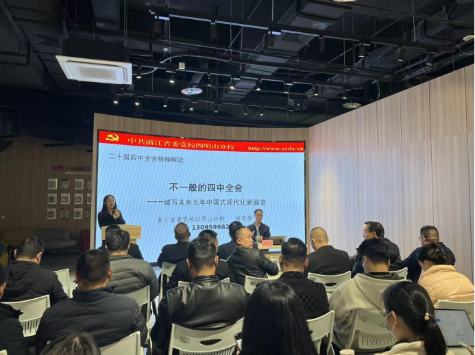 本次培训特邀浙江省委党校四明山分校赵奇伟副校长作《不一般的四中全会——续写未来五年中国式现代化新篇章》的专题授课。他以深厚的理论功底和生动的语言,系统阐释了党的二十届四中全会的重要意义、主要内容和战略部署,重点解读了全会关于推进国家治理体系和治理能力现代化、推动高质量发展等关键议题,并结合企业发展实际,深入浅出地分析了中国式现代化在企业实践中的路径与方向。