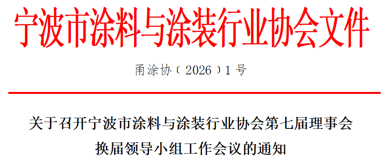 为有序推进宁波涂协第七届理事会换届工作,统一工作思路与各项部署,经研究决定,将组织召开“宁波市涂料与涂装行业协会第七届理事会换届领导小组工作会议”。下午将继续参加宁波涂协六届十次理事(扩大)会议,请各位参会领导提前安排好工作,会议内容重要,务必准时参会。具体事项通知如下: