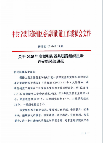 近日,经中共宁波市鄞州区委福明街道工作委员会评定,中共宁波市涂料与涂装行业协会支部凭借扎实的党建基础、创新的组织活动和显著的引领成效,再次获评“五星级党组织”荣誉称号,这是自2021年协会党支部成立以来,连续第四年获此殊荣。