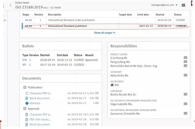 全国涂料和颜料标准化技术委员会国际标准化团队工作人员从2017年初就着手准备水分含量测定国际标准提案,利用2017年、2018年两年的ISO/TC35国际标准化年会向国外专家进行项目介绍,本项目于2018年1月成功立项、2019年4月正式发布。得益于与ISO工作组和分会等的秘书、召集人及国外专家的良好沟通,及时提供各阶段草案和文件,本国际标准从立项到发布仅花了一年多时间,期间跳过了CD和FDIS两个阶段,比预计发布日期2021年1月提早了近两年时间。