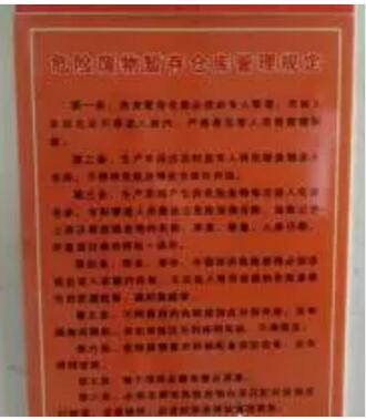 (4)门外双锁双人管理制度并挂有危险品标识牌。