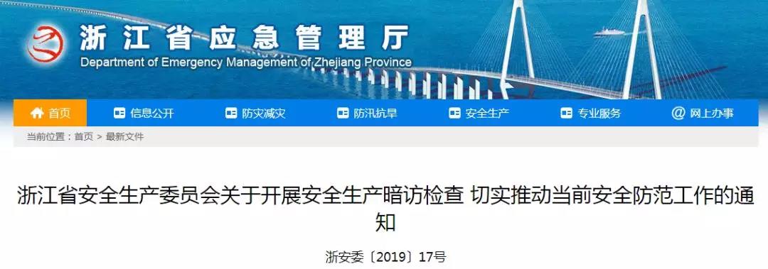 (一)暗访范围和内容。本次暗访覆盖全省11个设区市,涉及道路交通、工矿商贸、危险化学品、消防安全、海上安全、建筑施工等重点领域。重点检查省安委会《关于印发“平安护航新中国成立70周年大会战”公共安全治理攻坚战任务分工及工作进度计划图的通知》(浙安委〔2019〕15号)明确的各项安全防范措施落实情况;《浙江省安全生产综合治理三年行动计划(2017—2020年)》的落实情况,特别是重点行业领域安全生产六大攻坚和三项整治开展情况、隐患闭环整改情况;深刻吸取江苏响水“3•21”特别重大爆炸事故教训,开展危险化学品安全生产大检查10项重点任务落实情况。