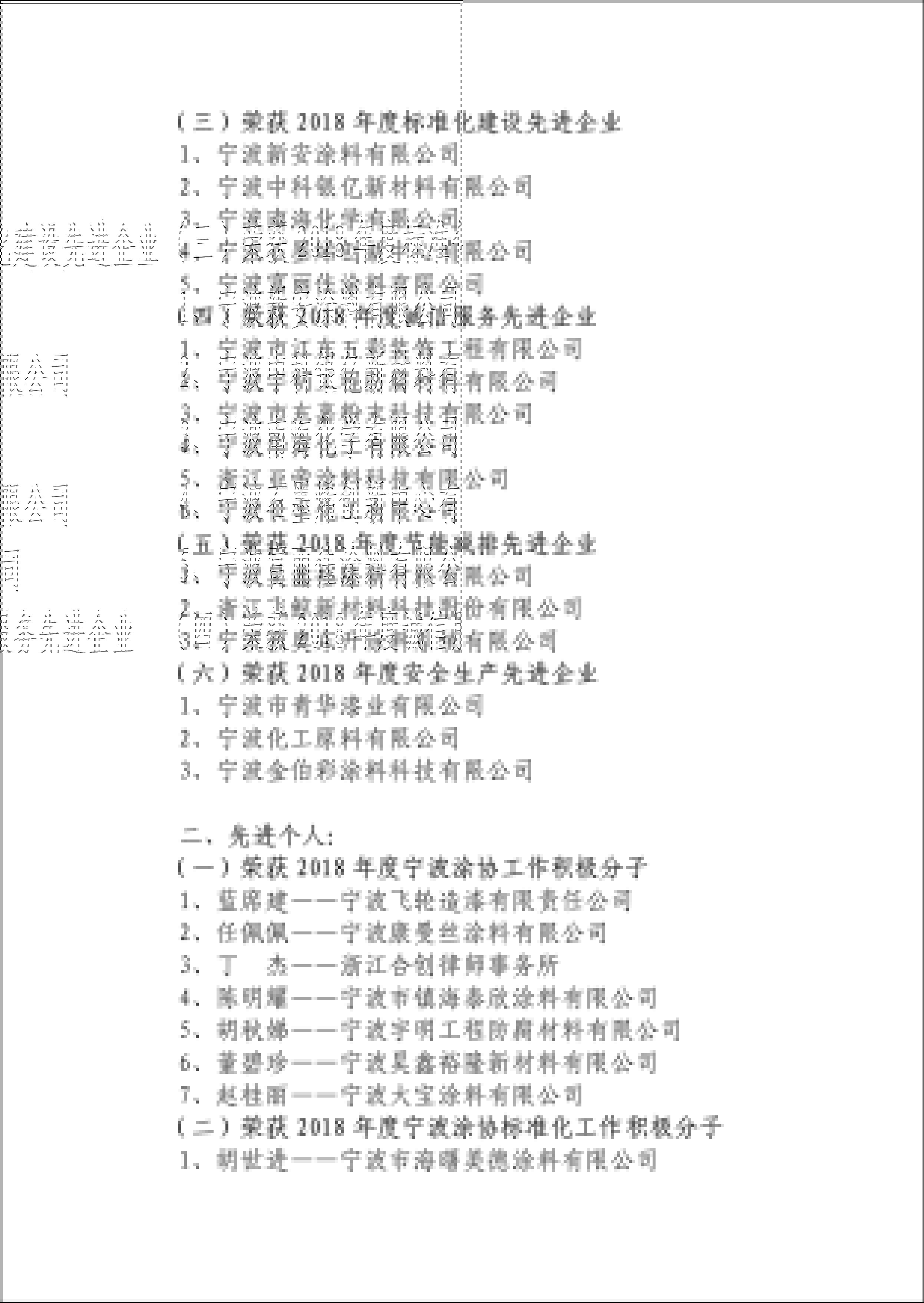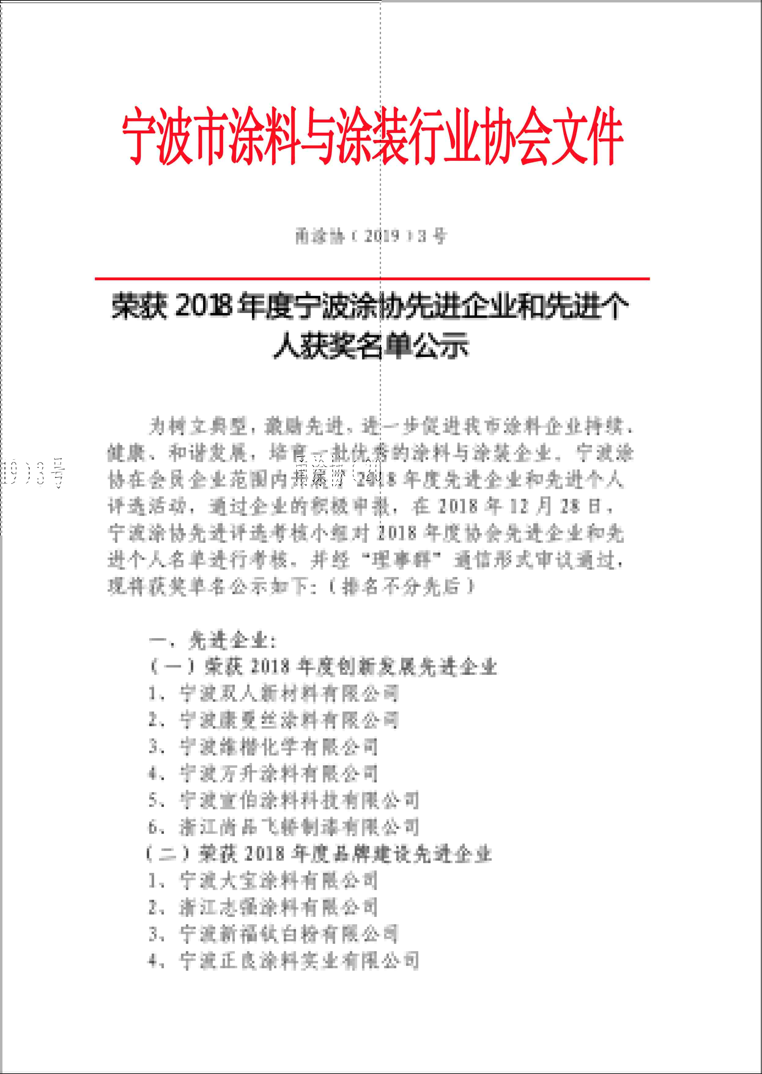 荣获2018年度宁波涂协先进企业和先进个人获奖名单公示