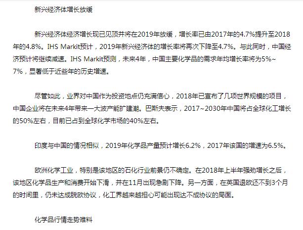 全球化工市场增速下降 未来几年还将继续放缓