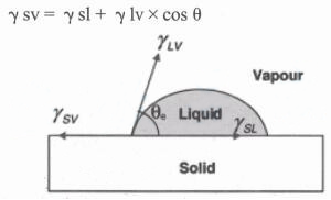 著名的杨氏接触角方程被广泛用于液体在固体表面的润湿现象分析。润湿过程与体系的界面张力有关。一滴液体落在水平固体表面上,当达到平衡时,形成的接触角与各界面张力之间符合下面的杨氏方程(Young Equation):