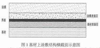 下图是一个基材上有涂膜的横截面示意图。包括基材、基材表面层、涂膜、涂膜表面层和界面。其中任何一个部分都有可能对附着力的问题有影响。同时附着力的问题也跑不出这个范围。