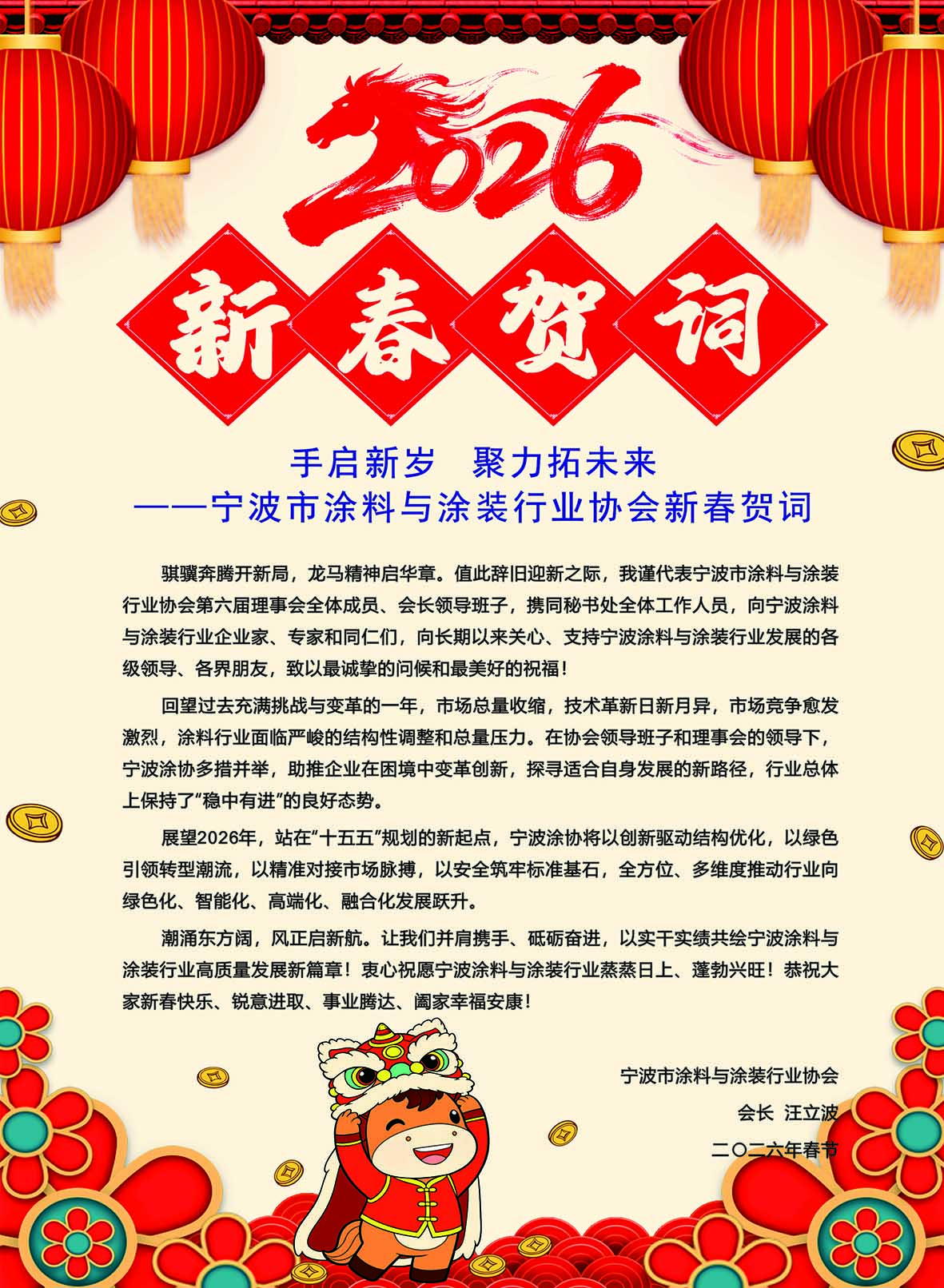 携手启新岁 聚力拓未来 ——宁波市涂料与涂装行业协会新春贺词