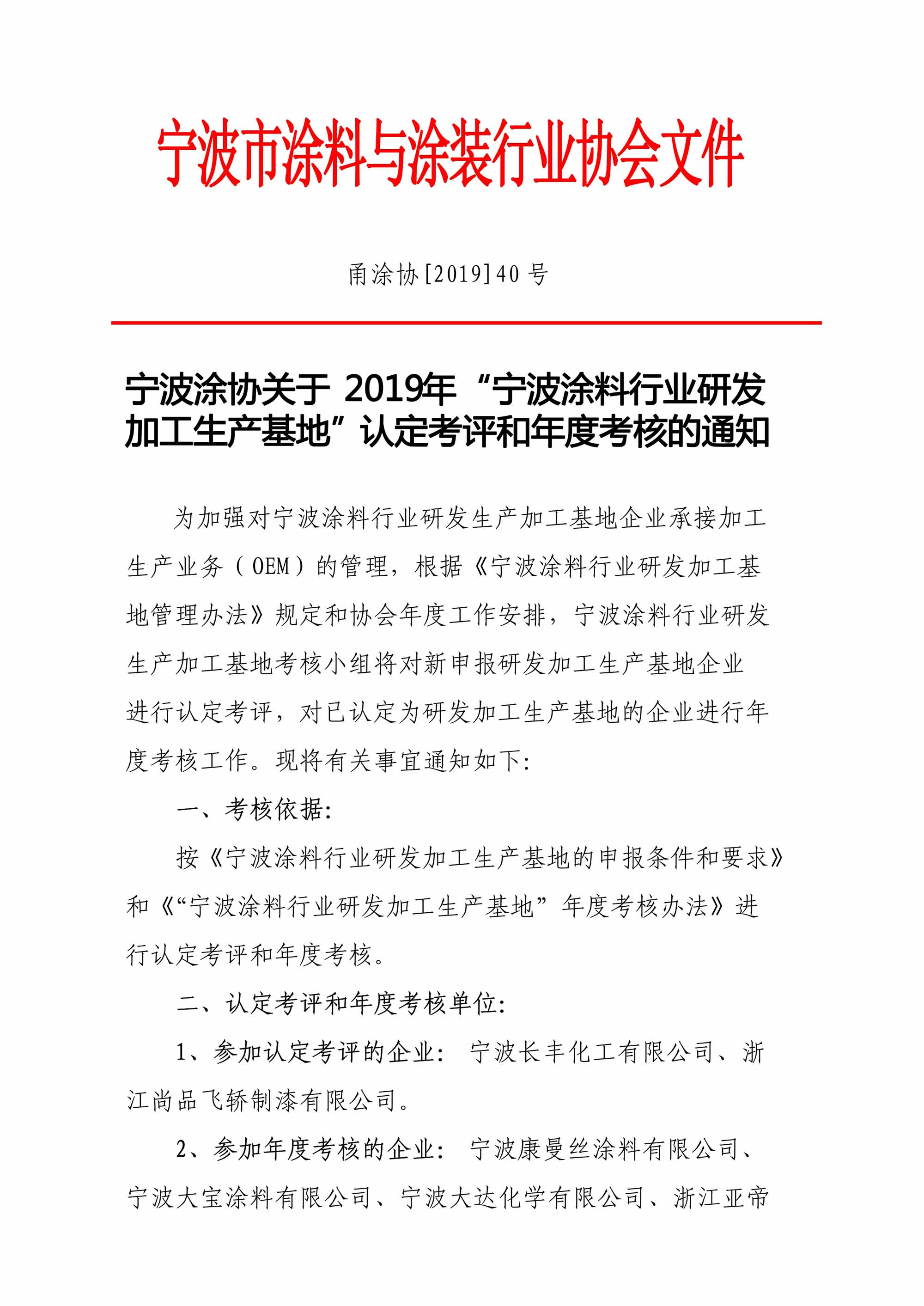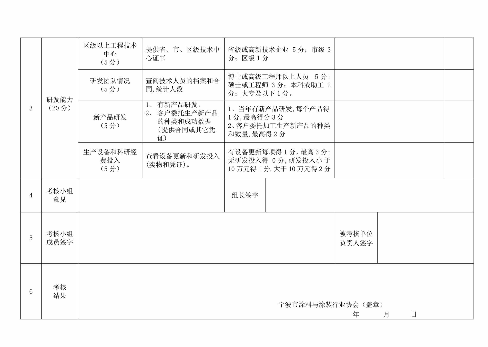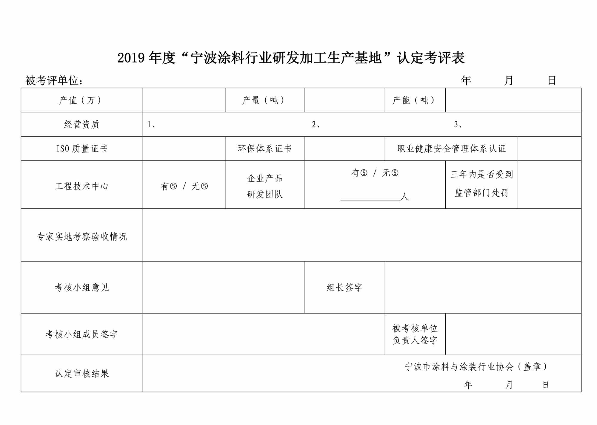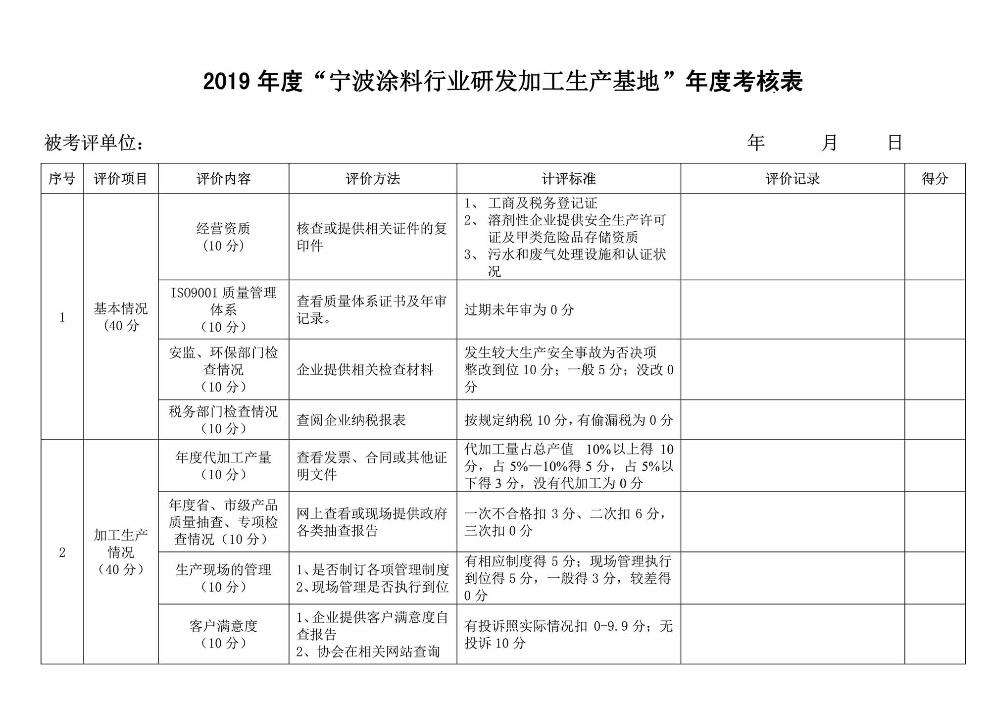 附件:1、2019年度宁波涂料行业研发加工生产基地认定考评表