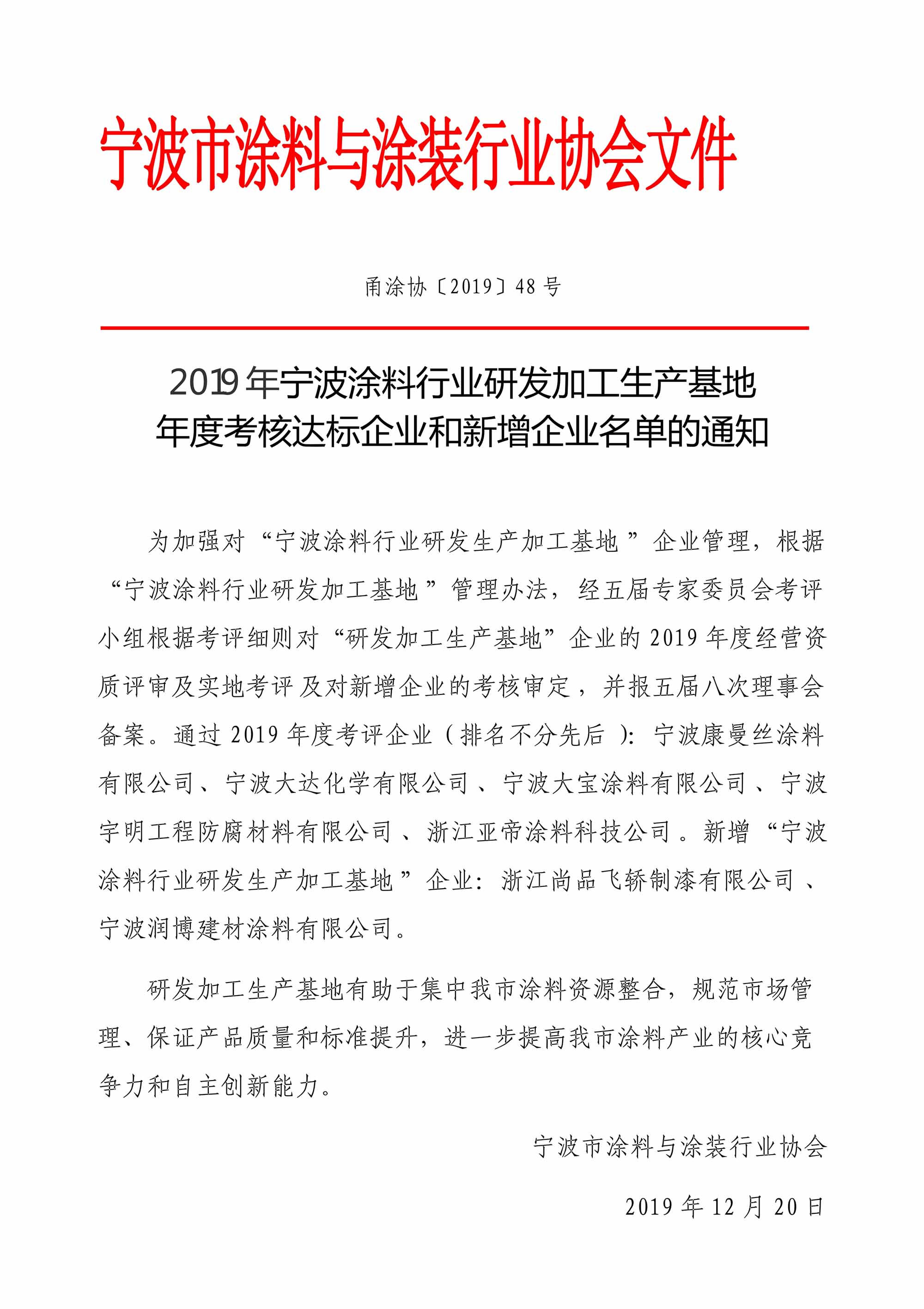 2019年宁波涂料行业研发加工生产基地年度考核达标企业和新增企业名单的通知