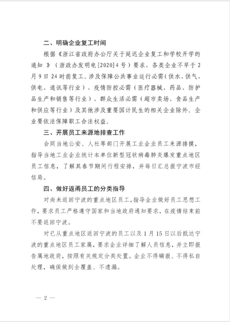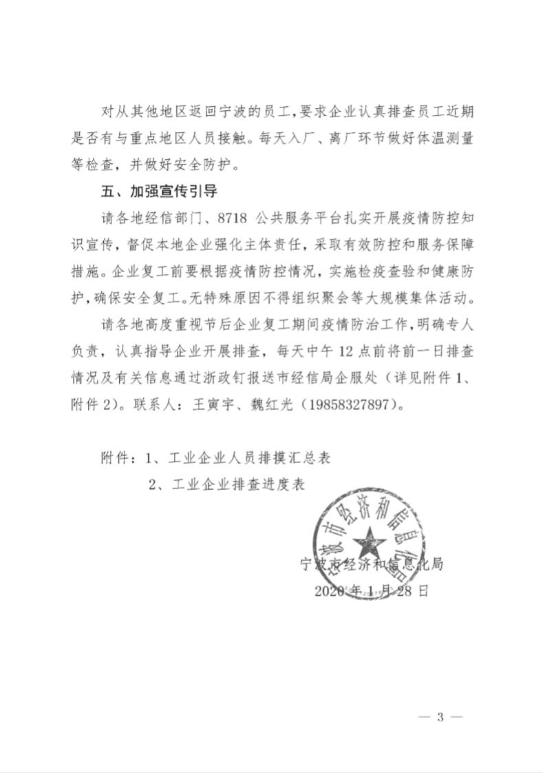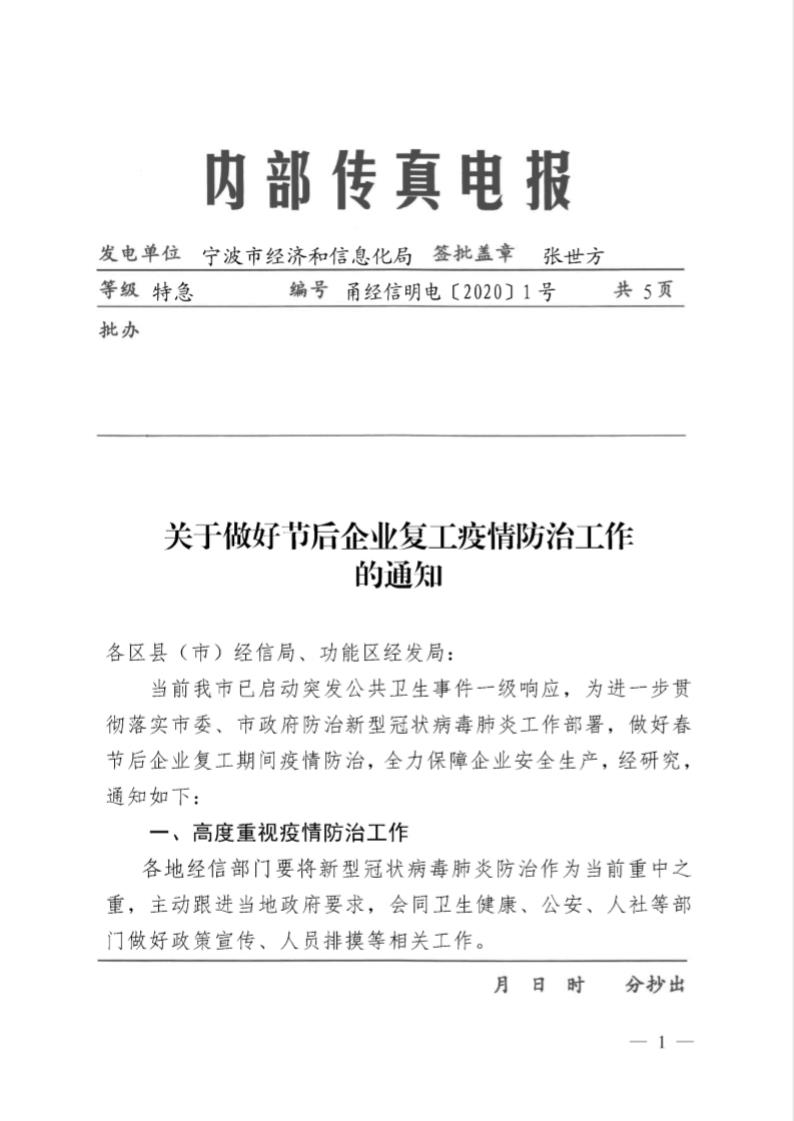 为响应政府号召,进一步加强疫情防控工作,现将市经信局的重要通知转发如下,希望各会员企业做好节后企业复工疫情防治工作。