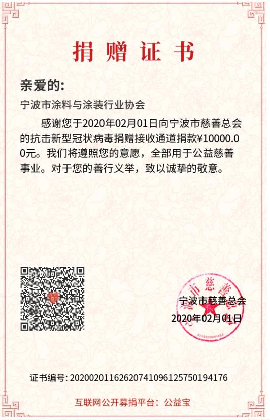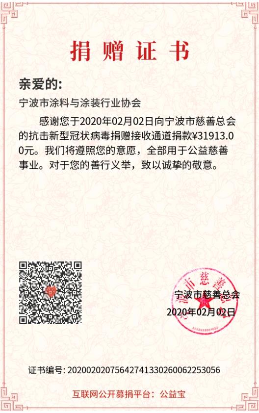 2、协会第一批捐赠款101913元,于2月1日晚通过宁波市慈善总会定向捐赠宁波市华美医院。