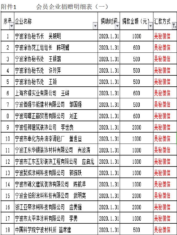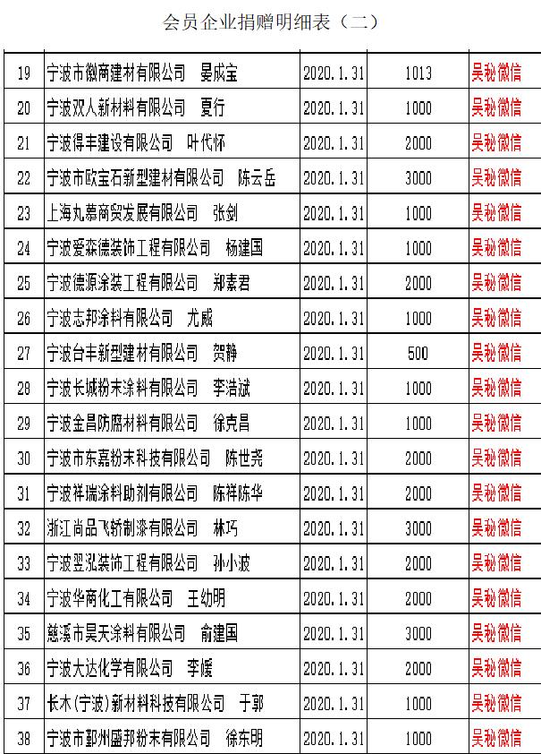 3、由于对公账户的捐款需要上班后汇出,协会陆续收到的善款,将于第二批捐出,并及时向各会员单位通报捐赠情况!